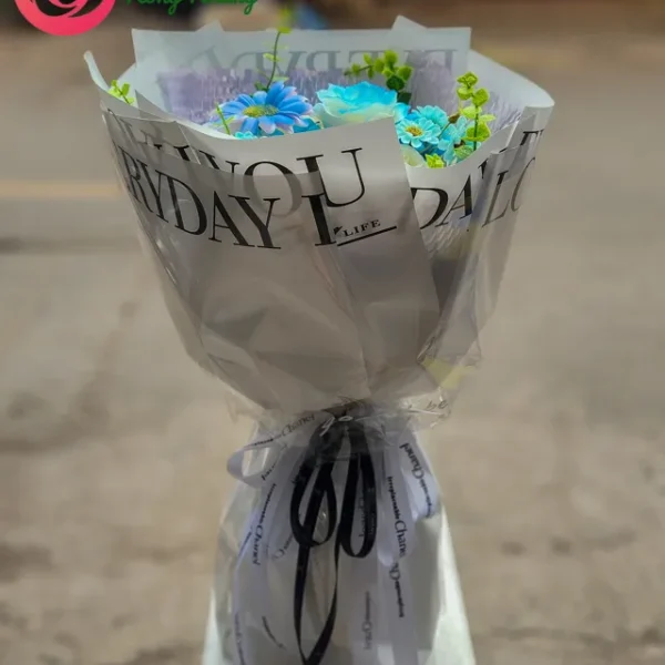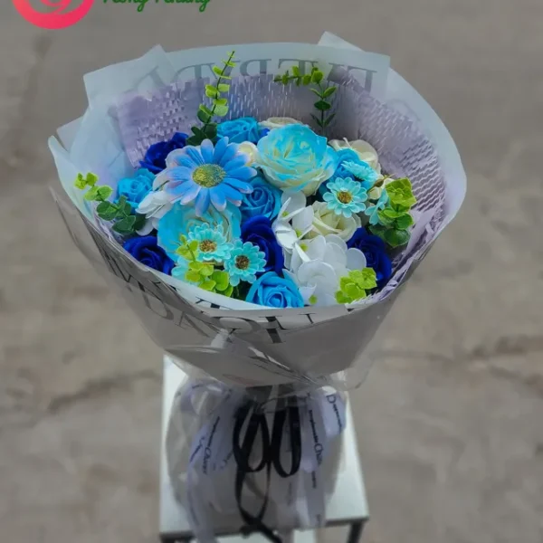 Bó hoa sáp cao cấp tone xanh, kiểu hiện đại