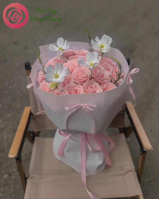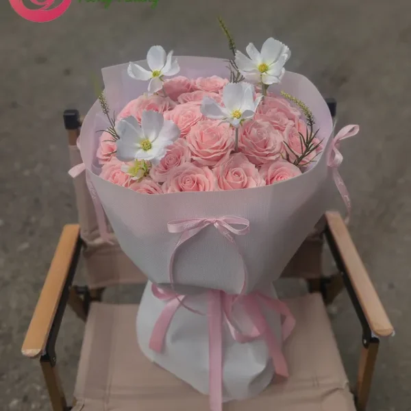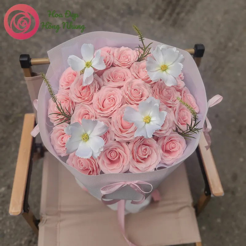 Bó hoa sáp hiện đại tone hồng