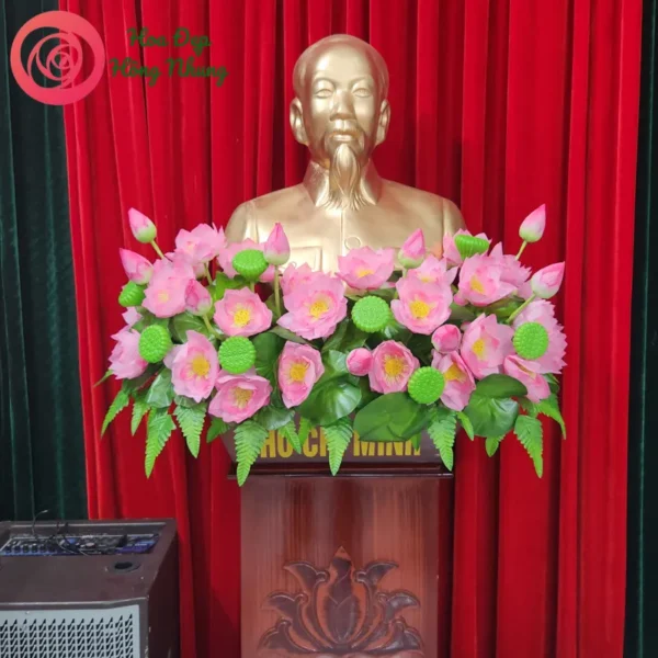 Chất liệu : hoa lụa sen bục Bác Hồ