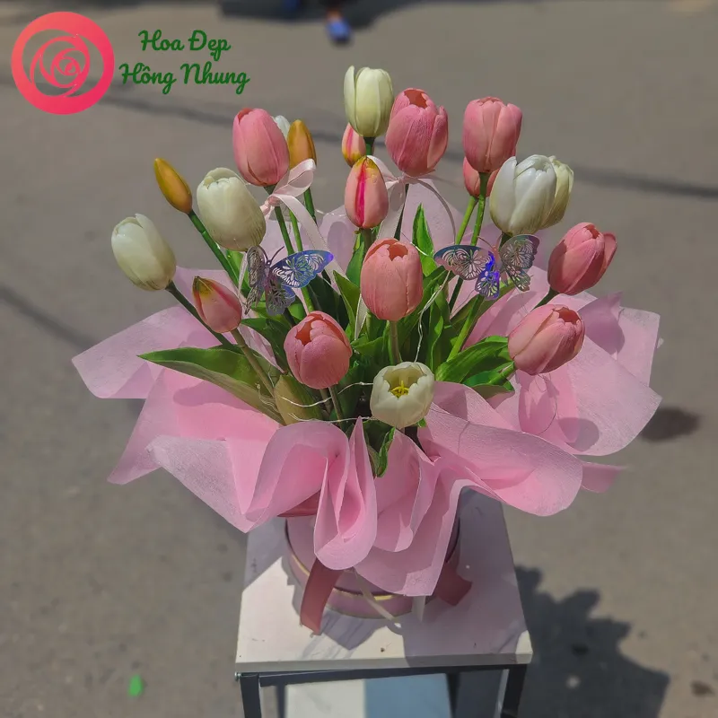 Hộp hoa lụa tuylip HL102